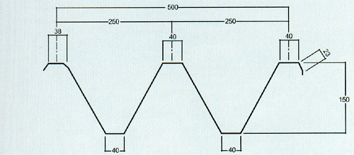 有效宽度500mm、板高150mm,为市场上最普及型屋面板。