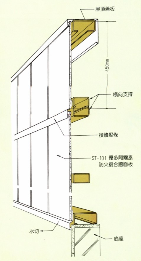 以耐火石膏板结合烤漆钢板所成的复合材料,使用在不燃(钢骨)结构上时不需下衬石膏板(木结构时需要)。因此施工上省工省时。