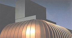 以 SL-24 携带式成型机加工制造之斜边 T型建筑金属面板可制造成各式圆形屋檐与屋顶。